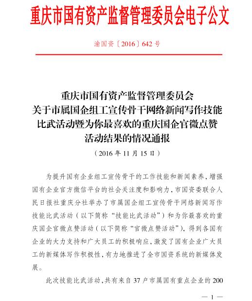 重慶國資網絡新聞寫作比武活動獲獎情況通報